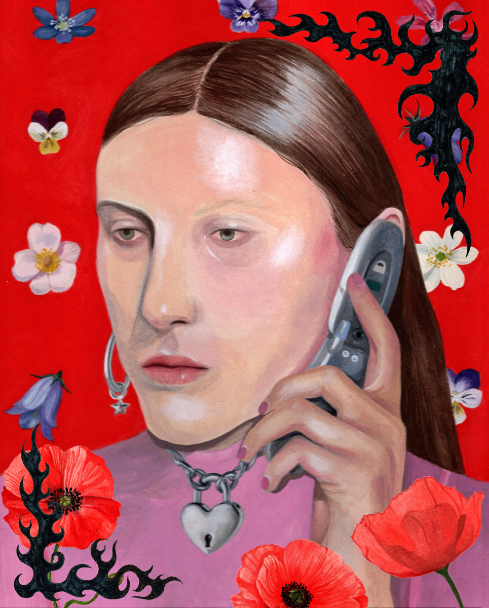 Jag målar i gouache och akvarell och använder sedan de målade fragmenten som byggstenar i digitala kollage. Genom att sätta samman det jag redan har målat kan jag pröva olika riktningar och låta bilden växa fram, utan att vara bunden till ett pappersark eller ett färdigt beslut från början.