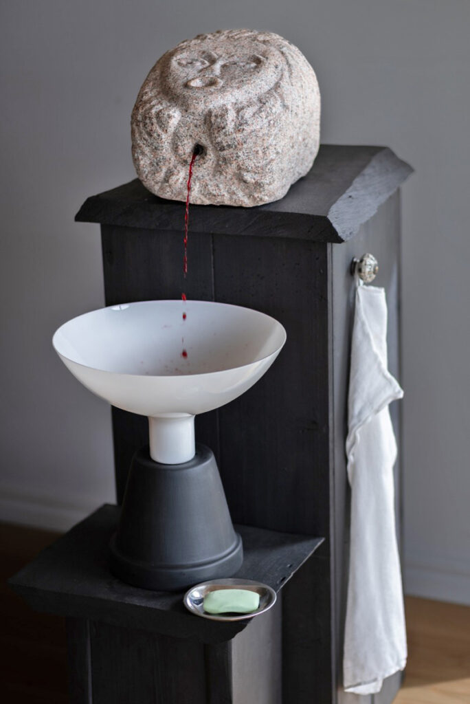 Denna skulptur höggs sommaren 2025 då jag läst att Sveriges handel med Israel slog alla rekord samtidigt som minst 20 000 Palestinska barn dödats till följd av Israels fullskaliga invasion.