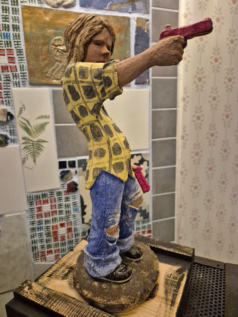På Vårsalongen har jag med en skulptur i keramik, som heter “Flickan med vattenpistolerna”.