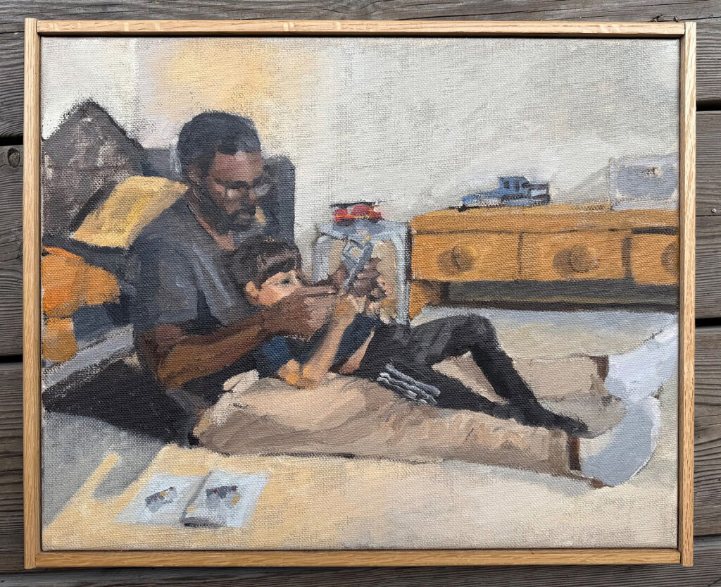 I det här verket har jag inspirerats av konstnärer som Helene Schjerfbeck och Edvard Munch som skildrade sjuka barn och barn i konvalescens i sina målningar. Till skillnad från 1800-talets konvalescenter, som ofta avbildades sittande i sängar eller fåtöljer omgivna av vuxna gestalter sitter barnet här på golvet och leker tillsammans med sin pappa.