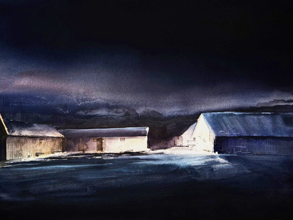 Jag arbetar i akvarell och att ”måla ljus” är en utmaning. Ljuset i bilden är ju det vita pappret, vilket gör att akvarellisten i stället behöver fokusera på att måla mörker och skuggor och jag själv anser att det effektfullaste sättet att lyfta fram ljuset i bilden är att ställa det vita arket mot det riktigt mörka.