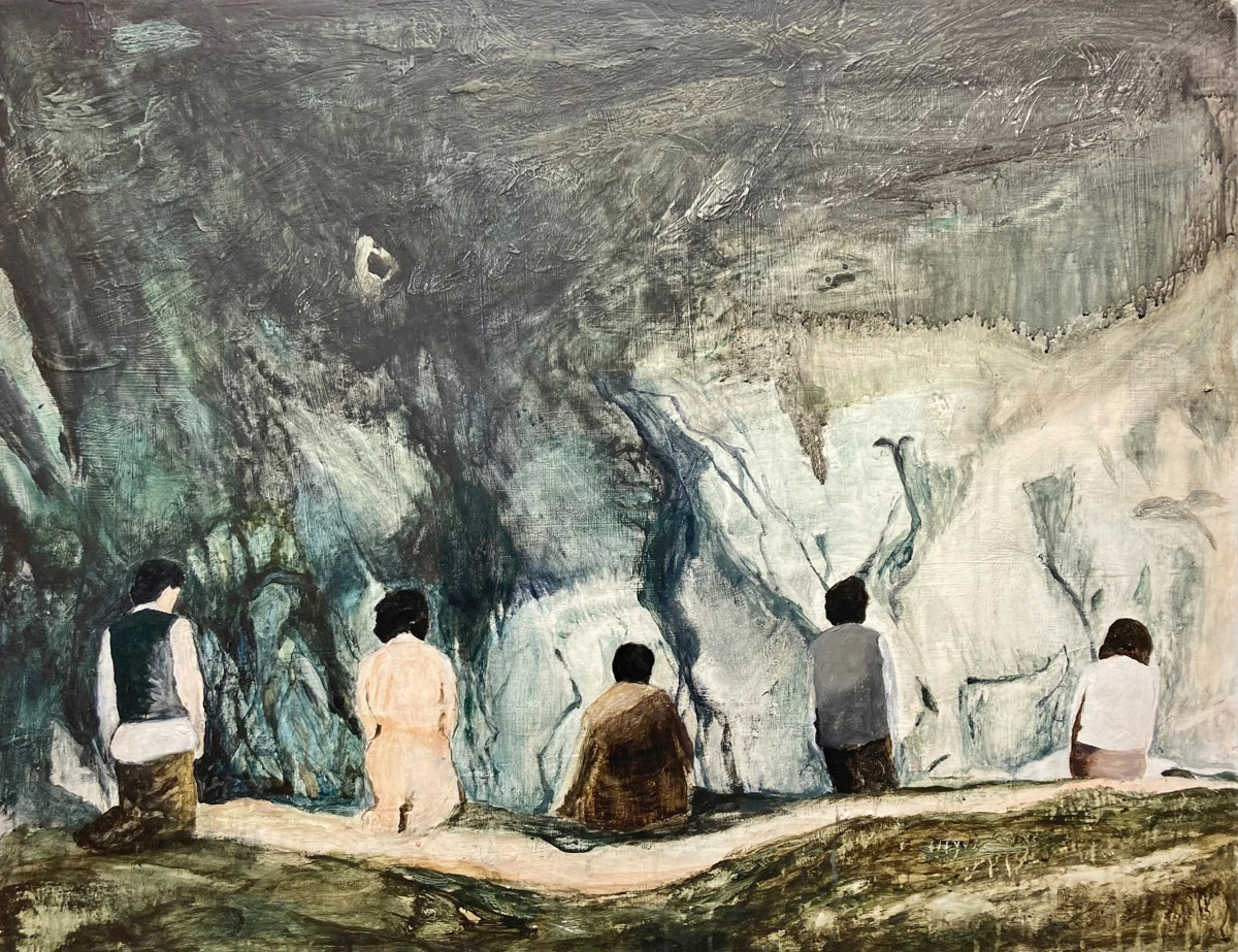 Målningen som är med på Vårsalongen, ”Väggen”, är en akrylmålning i lite större format än vad som är brukligt för mig. Materialet är väldigt viktigt för mig och bestäms av det jag vill gestalta. Ibland arbetar jag utifrån olika förlagor, ibland helt fritt. Genom åren har jag arbetat med olika två och tredimensionella tekniker, mer av detta kan man se på min hemsida. lenaparup.com.