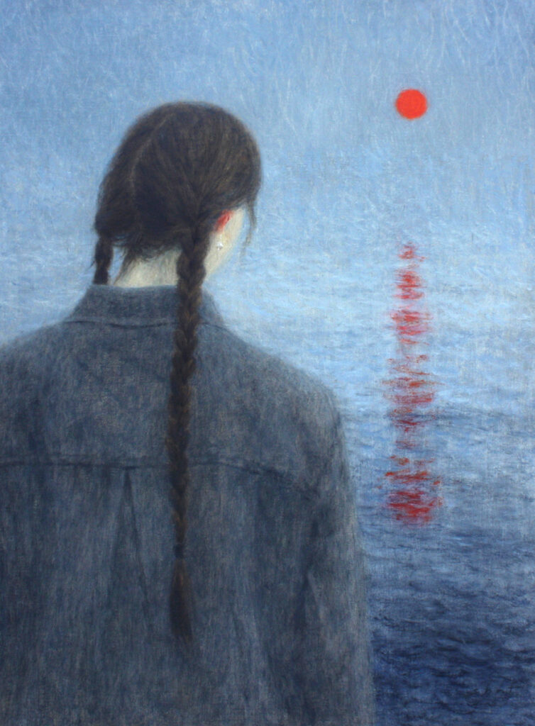 Jag satt på en brygga vid havet. Mörkret föll. Kalla vindar mot kinderna, och det enda som hördes var vågornas brus. Mitt ute på havet steg månen upp, likt hopp som visade sig i mörkret.